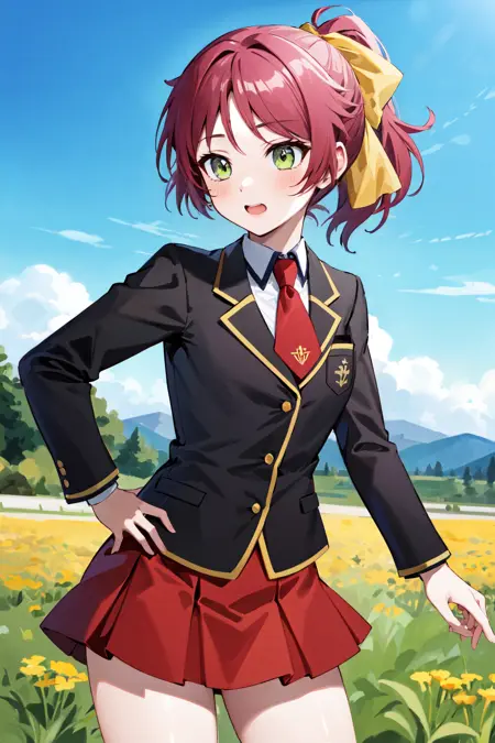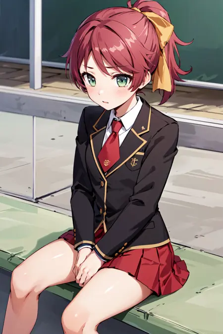服装1sm1, 学園制服, カラーネクタイ, 赤髪, 髪飾り, スカート, ジャケット, 長袖