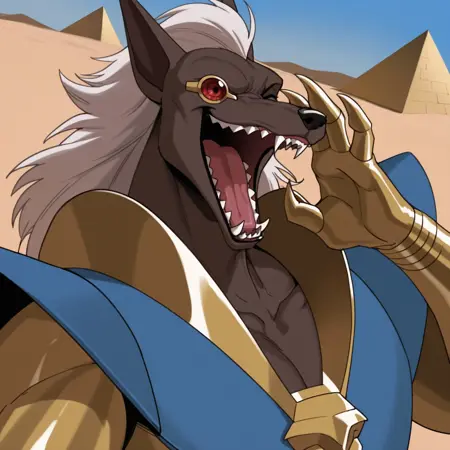 이전 Pony 버전: Gargoyles의 Jackal이 Anubis의 아바타가 된 모습. 어릴 적 이 캐릭터를 보고 "이런 전환은 정말 멋지구나... 이걸로 LORA를 만들어보자"라고 생각했던 기억이 납니다. 아주 희귀한 캐릭터라, 그가 이 형태로 등장하는 에피소드에서 약 40장의 스크린샷만 사용했습니다. 사용할 수 있는 자료가 매우 적었지만, 의외로 매우 훌륭하게 완성되었습니다.