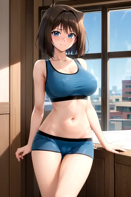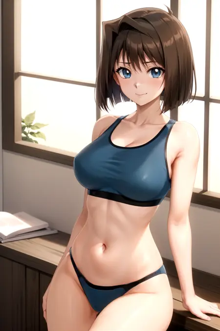 活性化タグを underwear、青色のパンツ または 灰色のパンツ、スポーツブラ、青色のブラ または 灰色のブラ と共に使用してください。