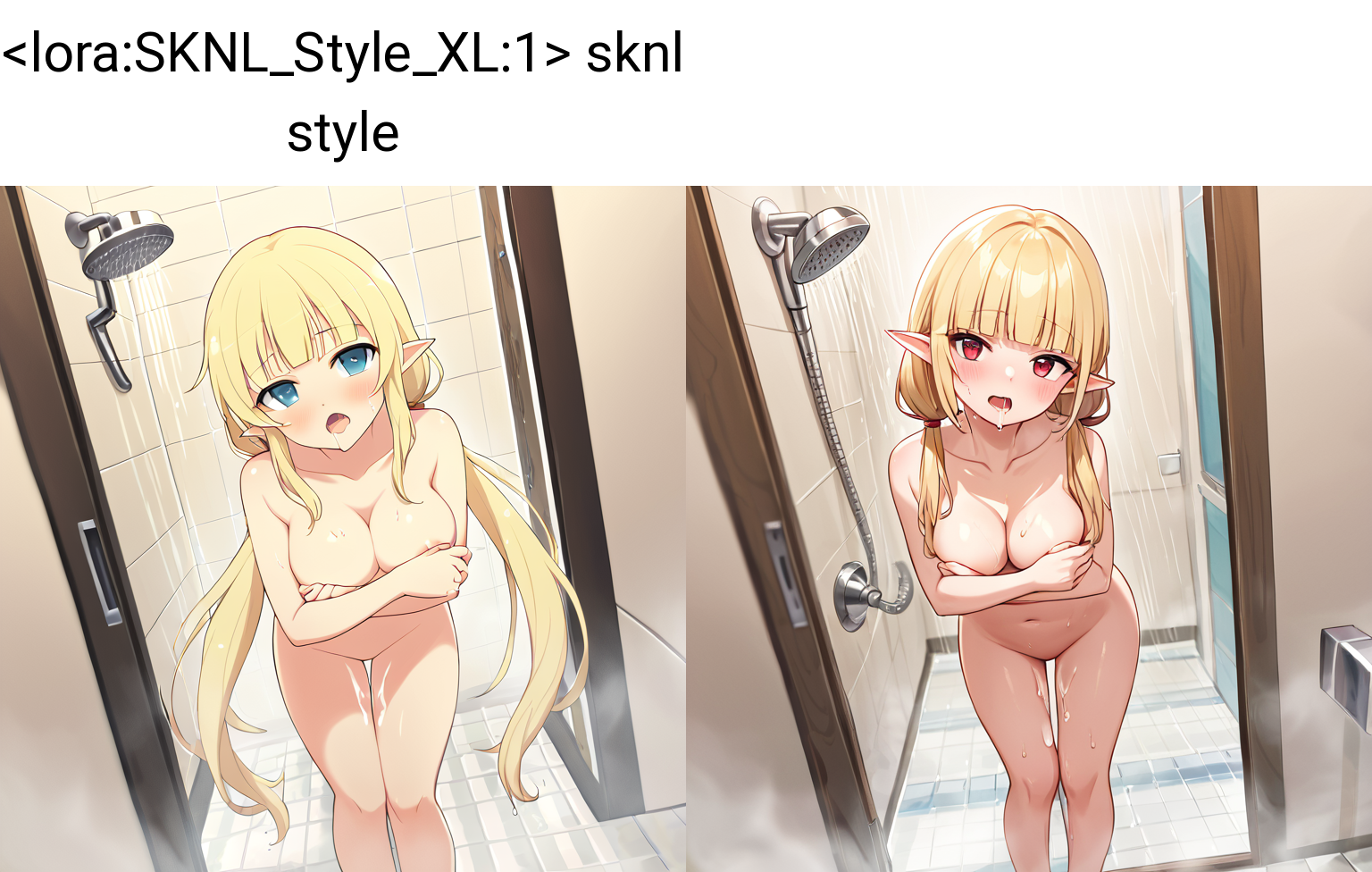 Senran Kagura: New Link(キャラクターおよび著作権タグを除去済み)の画像を学習させた、比較的フラットなアニメスタイルの画像を生成します。以下のような変化が見られます:
