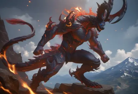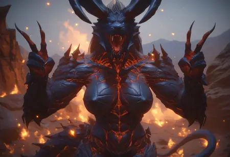 彼が黄色い目を持つシーンもあるので、代わりに「青い目」のプロンプトを「黄色い目」に置き換えることもできる。また、ほとんどのカットシーンではイフリートが炎に包まれているため、プロンプトに「火」を追加すると、彼の体の表現がさらに強化される可能性がある。