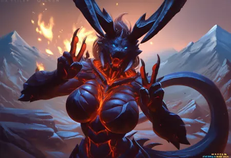 파이널 판타지 XVI의 이프리트. 이는 파이널 판타지 시리즈 전작들 중에서 내가 가장 좋아하는 이프리트의 디자인이다. 이 게임에서 에이코인 전투가 단연 최고의 포인트였다. 이 버전의 이프리트를 그려주는 사람이 더 많았으면 좋겠는데, 정말 멋진 디자인을 가지고 있기 때문이다. 거의 모든 트레이닝은 게임의 컷신에서 캡처한 스크린샷을 사용했다.