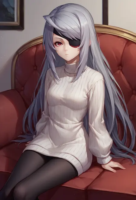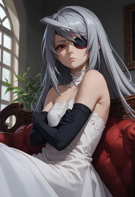 トリガー+外見: laurab0dewig, 灰色の髪, アホ毛, 赤い目, 目隠し