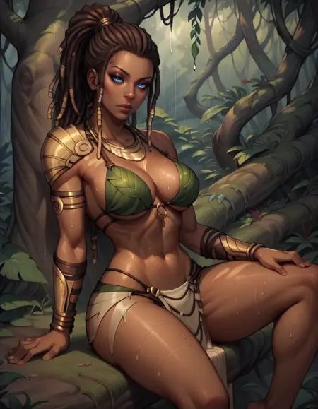 Another character from Killer instinct! Hope you all like! You can prompt her tribal stuff with "animal print" and without the armor pretty easily. Have fun!