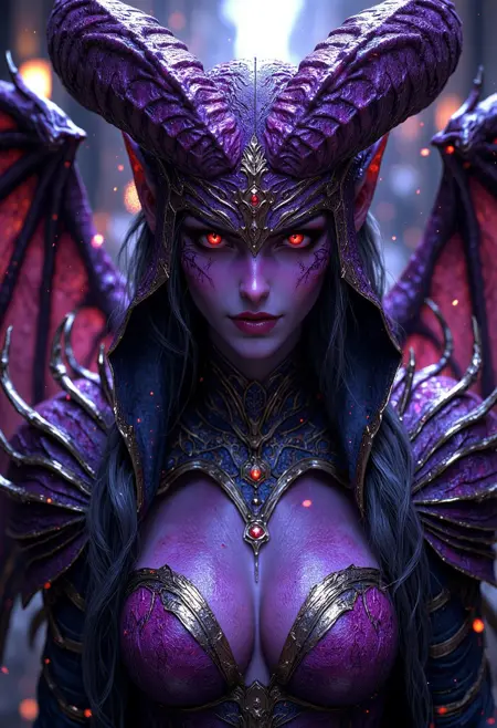 score_9, score_8_up, score_7_up, score_6_up, score_5_up, score_4_up,(A purple male demon, cracked glowing skin in purple, big purple demon wings on his back, in a dark fantasy style, digital art portrait, pov from the side:1.2) hkevil