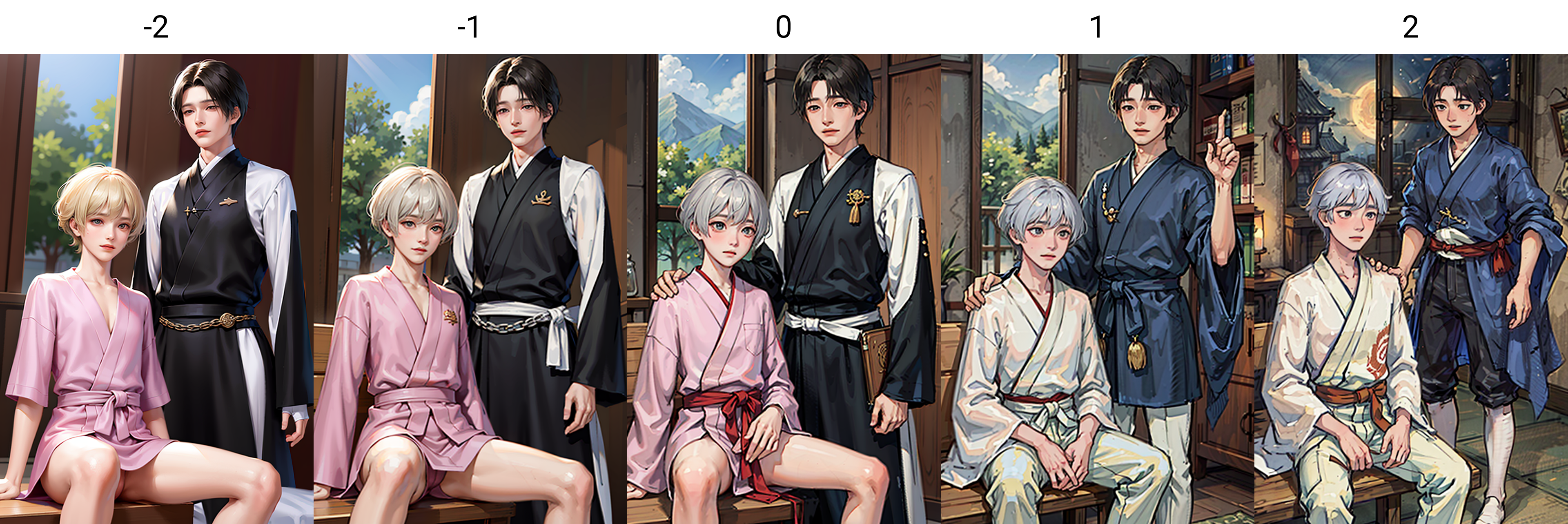 正数的权重依然能增加画面细节,特别适合无中生有,负数的权重会减少细节,目前出现了一种有趣的现象,一些2d或者2.5d效果的模型在使用负数权重后模型被逐渐还原成3d真实效果。也许这种有趣的效果能够使用在某些特殊需求的项目上,故此上传了该版本。