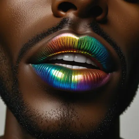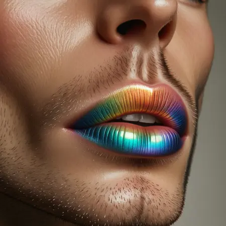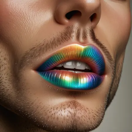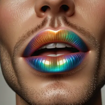 此LoRA模型可为男女嘴唇添加虹彩彩虹口红效果。