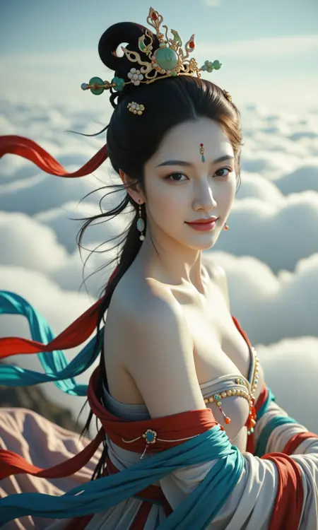 strength_model = 1 の場合、このモデルは山、雲、霧、飛びついた帯、人物の姿など、敦煌壁画の特徴的な芸術的要素を模倣できます。
