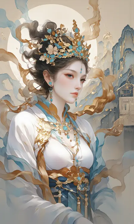 This model is trained based on the promotional posters of some Chinese historical dramas (Dunhuang style) and has a wonderful enchanting effect in representing the function of traditional Chinese fine brush painting – the human face appears cleaner, clearer, and more aesthetically pleasing – more in line with traditional Chinese aesthetic standards.