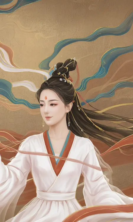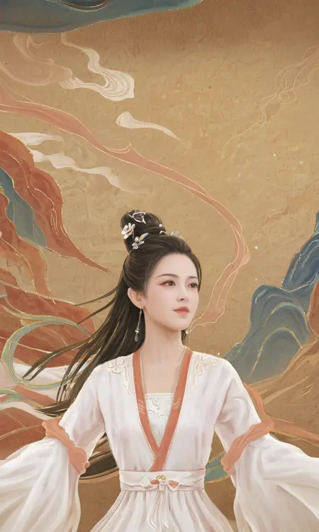 在 strength_model = 1 时,此模型可以模拟敦煌壁画的某些艺术特征,比如山、云、雾、飘带、以及人物形象等。