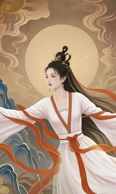 At strength_model = 1, this model can simulate certain artistic characteristics of Dunhuang murals, such as mountains, clouds, mist, fluttering ribbons, and human figures.