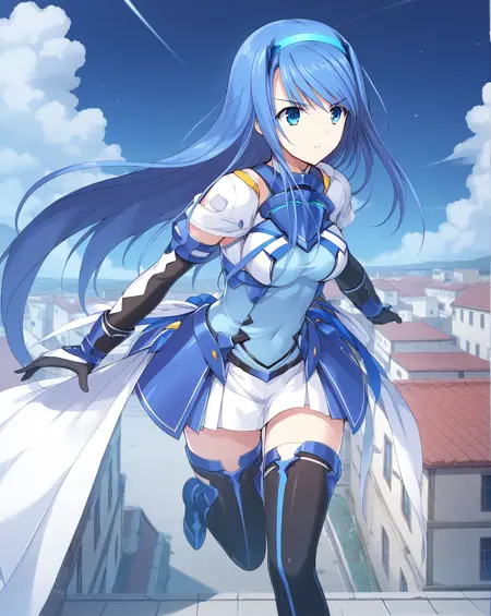 Clothes: magical girl,blue hairband,elbow gloves,black thighhighs,waist armor