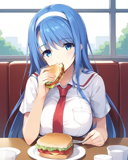 Trigger: ellis xillia,blue eyes,blue hair,long hair, (large breasts if needed)