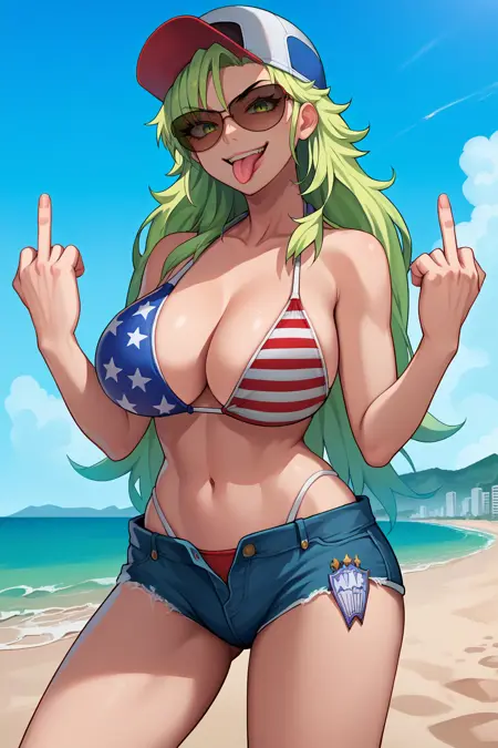 외모: ctnp, 녹색 눈, 녹색 머리, 긴 머리, 큰 가슴