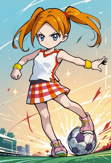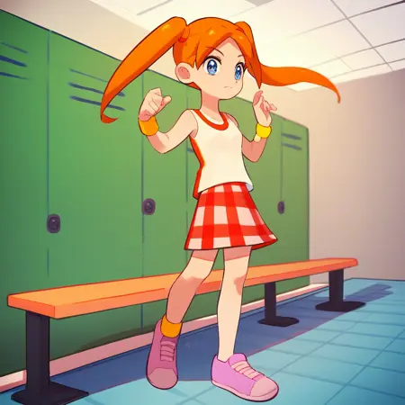 에이스: Ace_PT, 파란 눈, 더블 테일, 짧은 더블 테일, 중간 갈라진 앞머리, 주황색 머리, 작은 가슴,