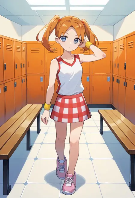 Ella: Ella_AT,蓝眼睛,橙色头发,马尾辫,遮阳帽,小胸部,