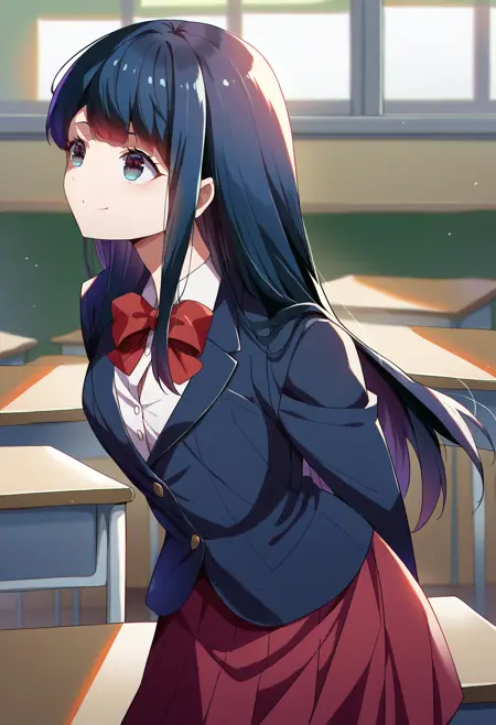 SuzuneInukamiSchool, long hair, sidelocks, red bowtie, black blazer, red skirt