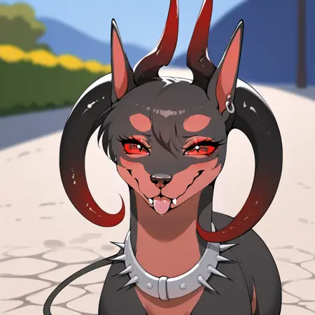 主要触发词是“monica, hellhound, dobermann”,因为该角色设计为地狱犬与杜宾犬的混合体