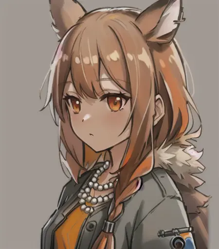 如果想增强效果,可以尝试添加:(orange dress, rings, jewerly, pearl necklaces, grey_jacket, squirrel girl, squirrel ears, squirrel tail)尽情享受吧!