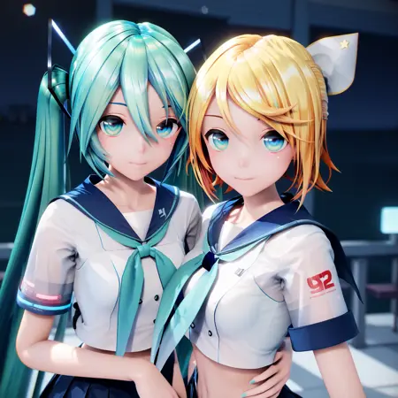 [Pony] Hatsune Miku & Kagamin Rin 10th anniversary MMD Model (YYB ver) and Sin Sack 3 in 1 lora