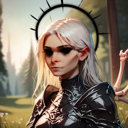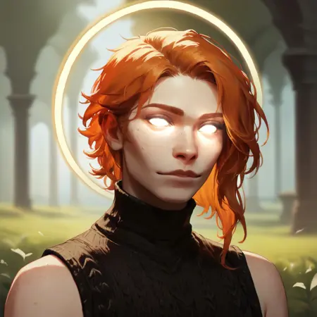 例:aasimar_protector, white eyes, wings, halo, 1girl, red hair, armor,