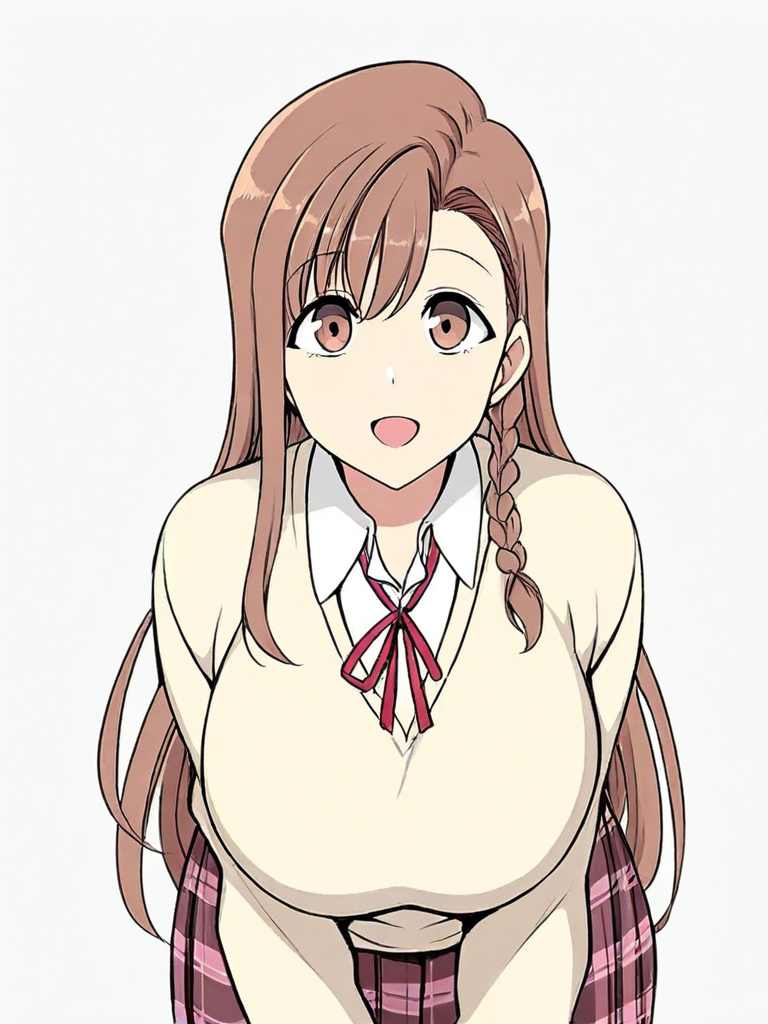小川 天音: oikawa amane, 单条发辫, 发丝垂肩, 成熟女性, 大胸