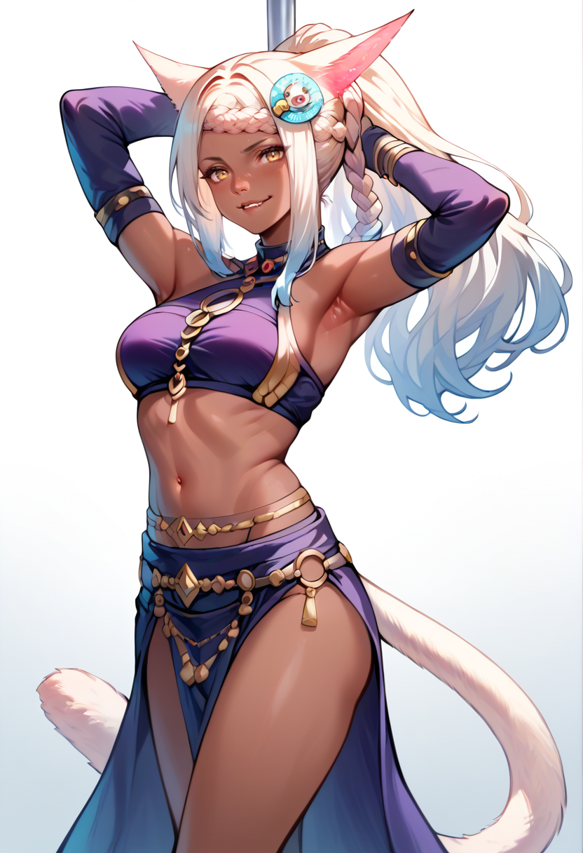 DawntrailsのEutrope。人間の耳を削除するためにいくつかのバージョンを試したが、使用するチェックポイント次第でまだ不安定である。ネガティブプロンプトに耳を追加するか、アンチ耳LoRAを試すこともできる(まだそれほど信頼できない)。後ほど再度調整する可能性がある(私は実際に何をしているのかわからないので、私が訓練したすべてのモデルに当てはまる)。