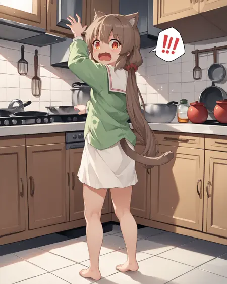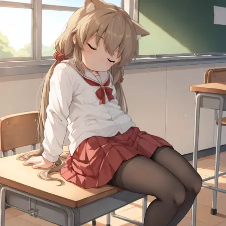 デフォルトの服装を生成するには、特別なプロンプトは不要です。他の服装を生成する場合は、単純にその服装をプロンプトに記述するだけで十分です。唯一の問題は、予期しないときに白いタイツが残ってしまうことです。その場合は、否定プロンプトに「白いタイツ」と入れるか、肯定プロンプトに「足の露出」と入れてください。一般的に、画像品質を向上させるには、否定プロンプトではなく肯定プロンプトに要素を記述する方が良いです。もう一点注目すべきは、赤いスクランチです。アーティストは、彼女のどんな服装にも必ずこのスクランチを追加しているため、私はそれを訓練から除外していません。