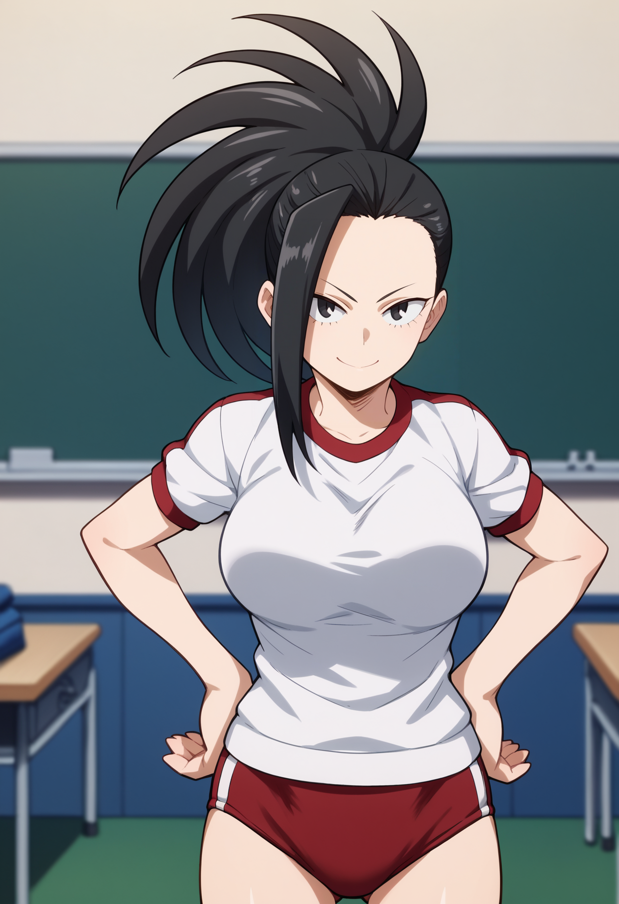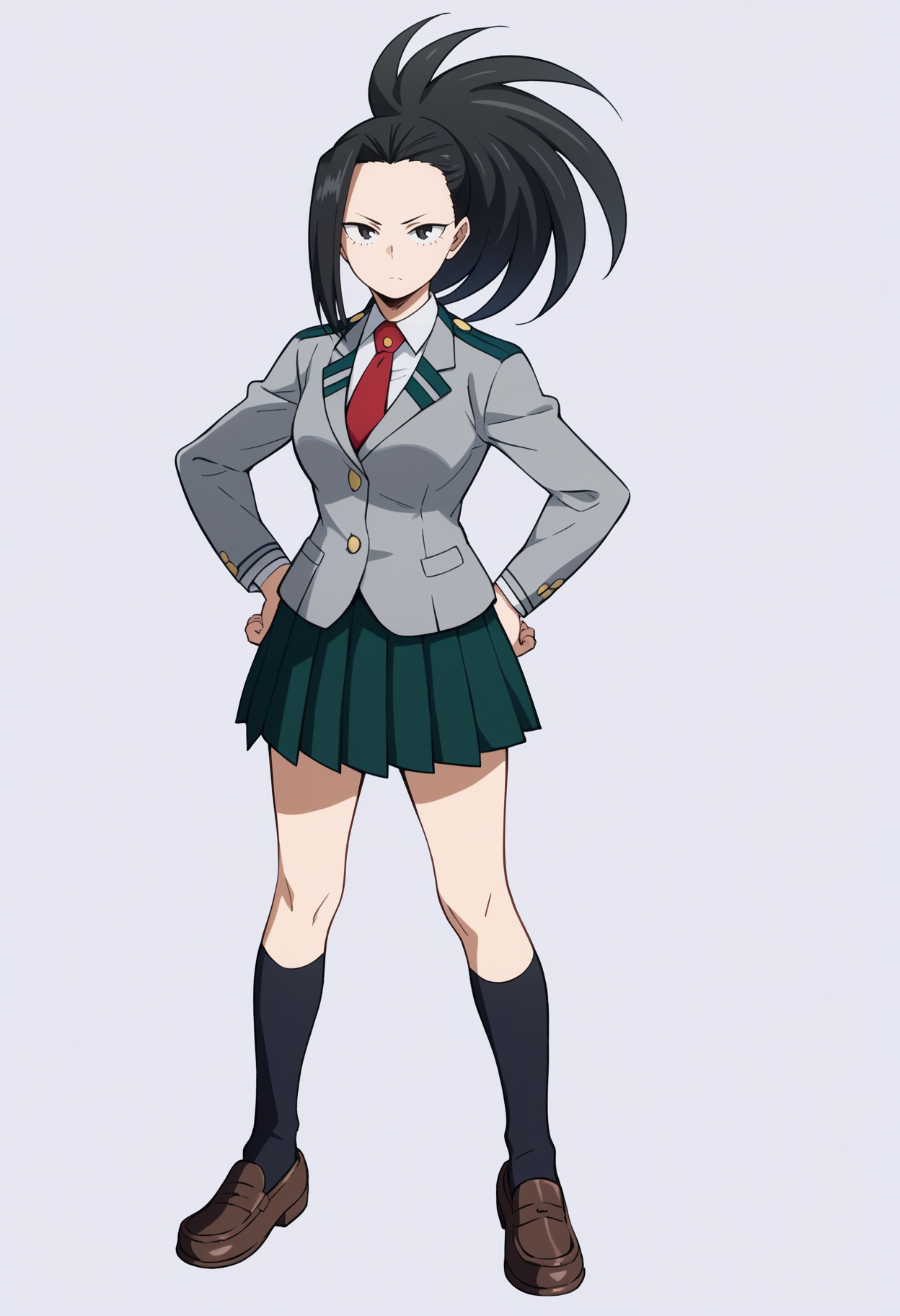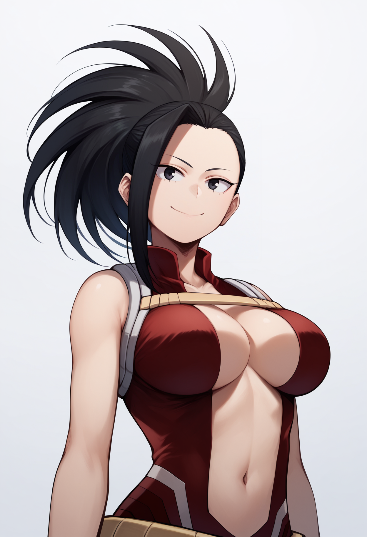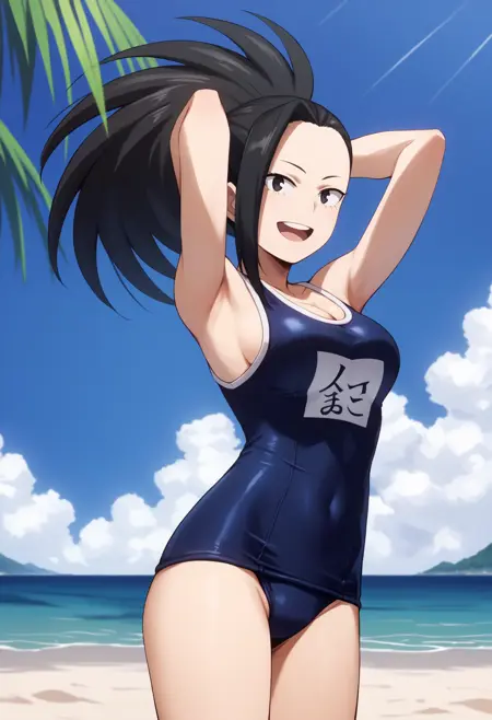 基本プロンプト:1girl, yaoyorozumomo, black eyes, black hair, ponytail, long hair, hair pulled back