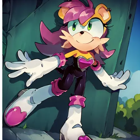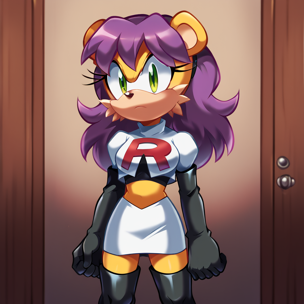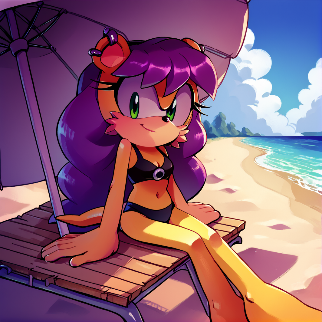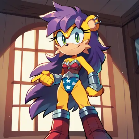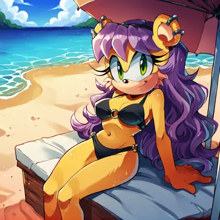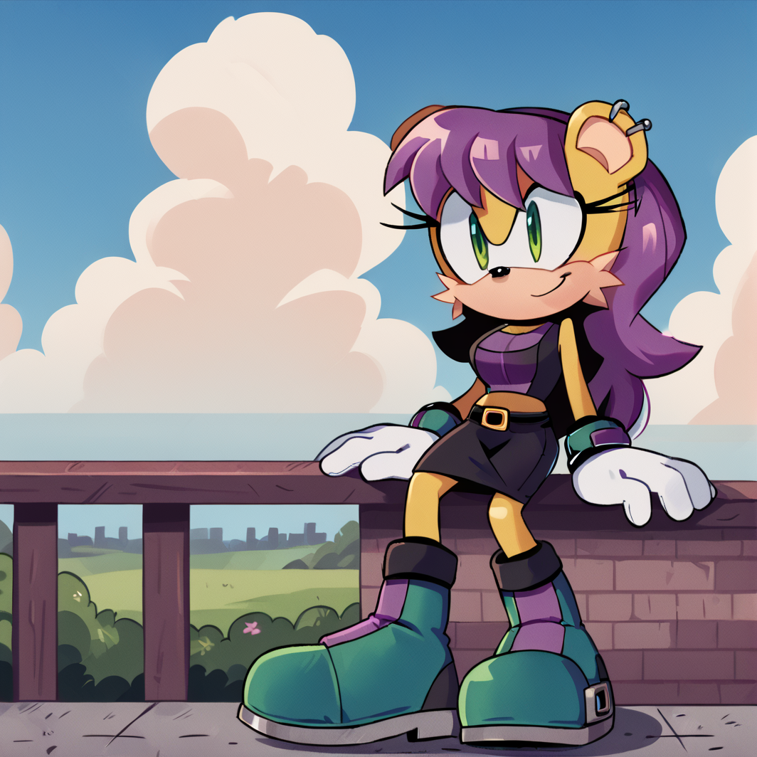 TAGS: mina mongoose, yellow fur, furry female, bodyfur, green eyes, purple hair, earrings