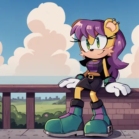 TAGS: 米娜 mongoose,黄色皮毛,毛茸茸的女性,全身毛发,绿色眼睛,紫色头发,耳环