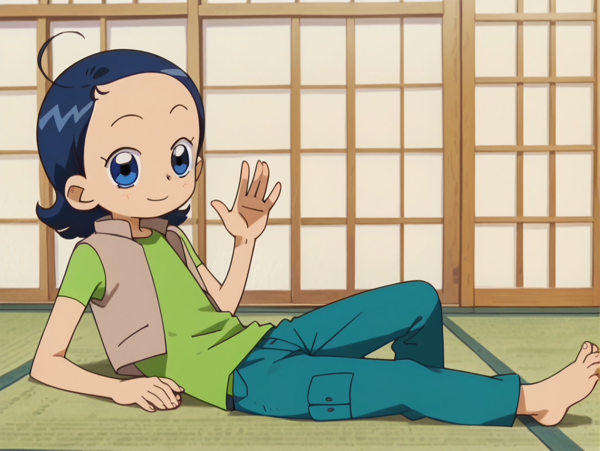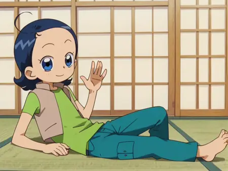 • Trigger word: aikottikawaii, short hair, blue hair, ahoge, blue eyes, vest, short sleeves, green shirt, pants,jeans
