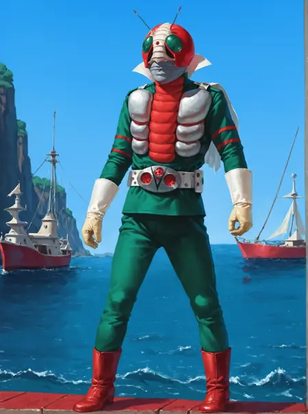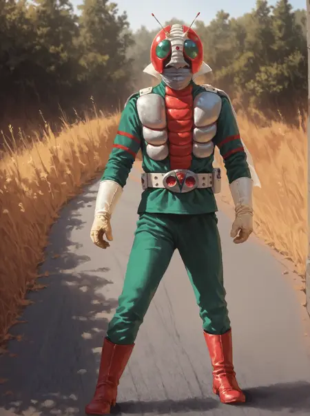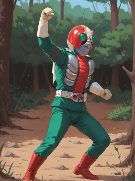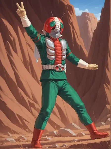 这是1973年的假面骑士V3,第三位假面骑士。由于没人对此感兴趣,我想自己制作昭和时期的假面骑士:)我会继续制作更多昭和骑士:)请分享你用我的LoRA生成的图片:D
