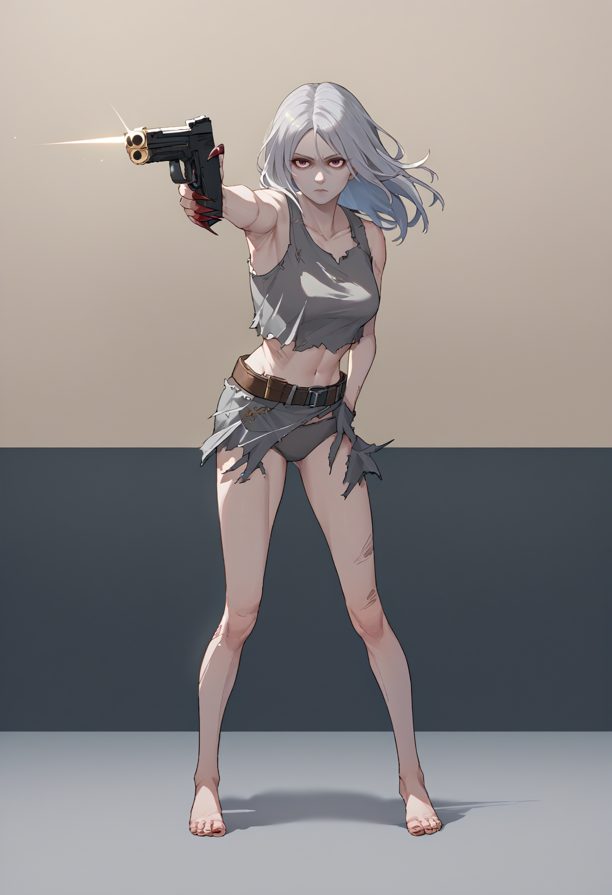 触发词 + 外观: l4dwitch, 灰色皮肤, 爪子, 灰色头发