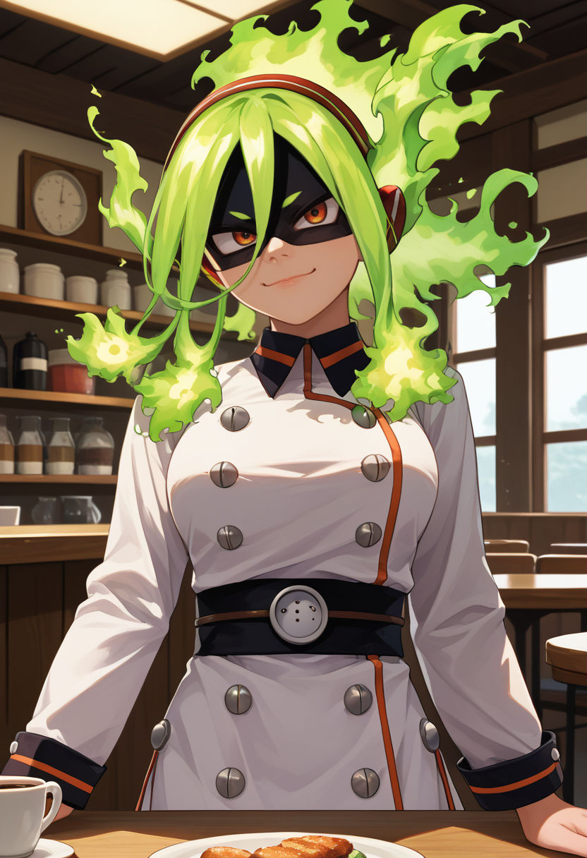 トリガー+外見: kamiji moe, 緑の髪, 火のような髪, 大きな胸