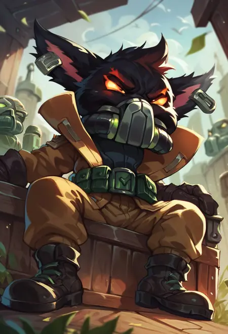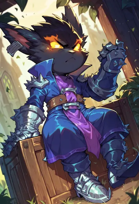 キャラクター:1boy, veigarxl, omegav, yordle, shortstack, 黒い毛皮, 光る目
