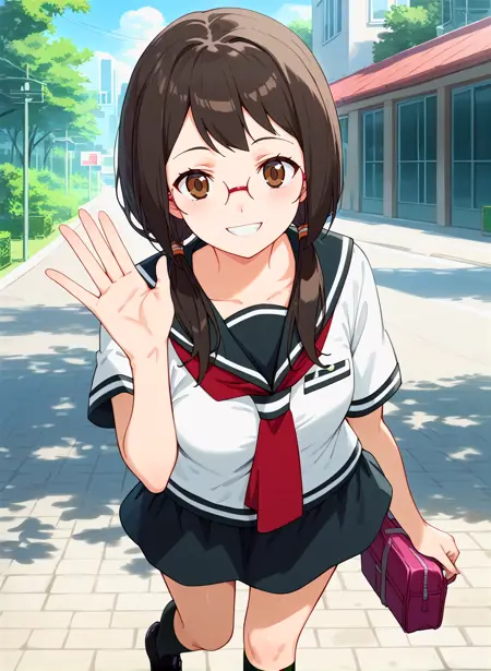isone_kotoha, 黑发, 棕色眼睛, 长发, 低双马尾, 眼镜