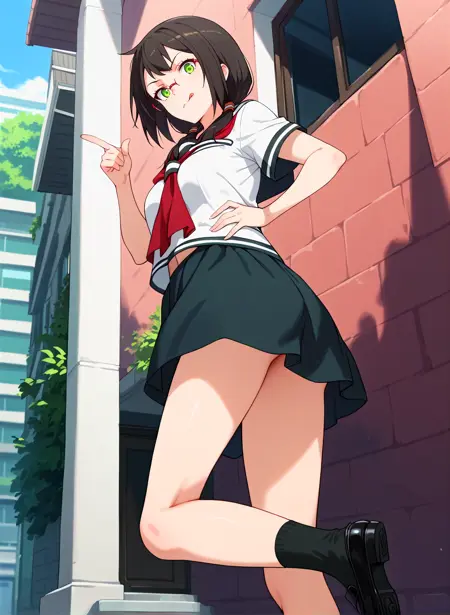Polo衫, 绿色衬衫, 短袖, 百褶裙, 袜子, 鞋子