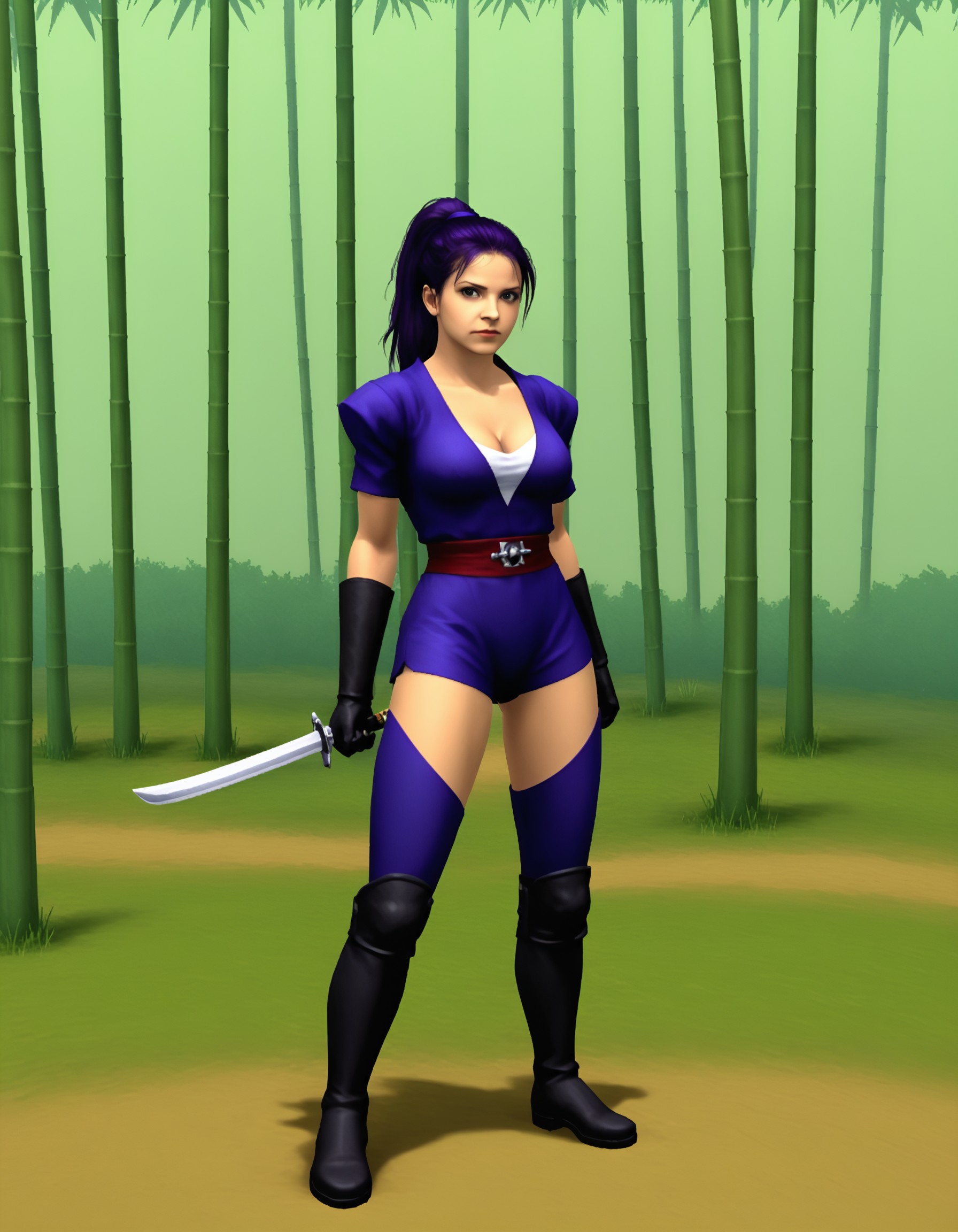 提示: PS2复古、低多边形、像素化纹理、怀旧光影、基础着色、高对比度、简约环境、复古配色、多边形细节、极简主义、单个角色、独显、锐利边缘、鲜明但柔和的调色板、动态姿势、块状细节