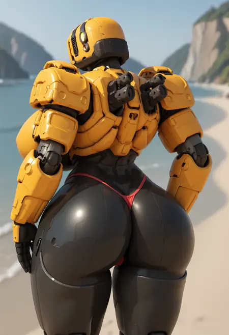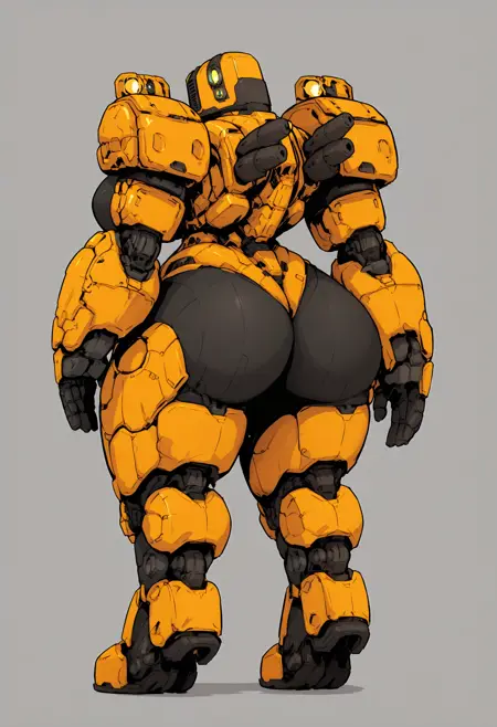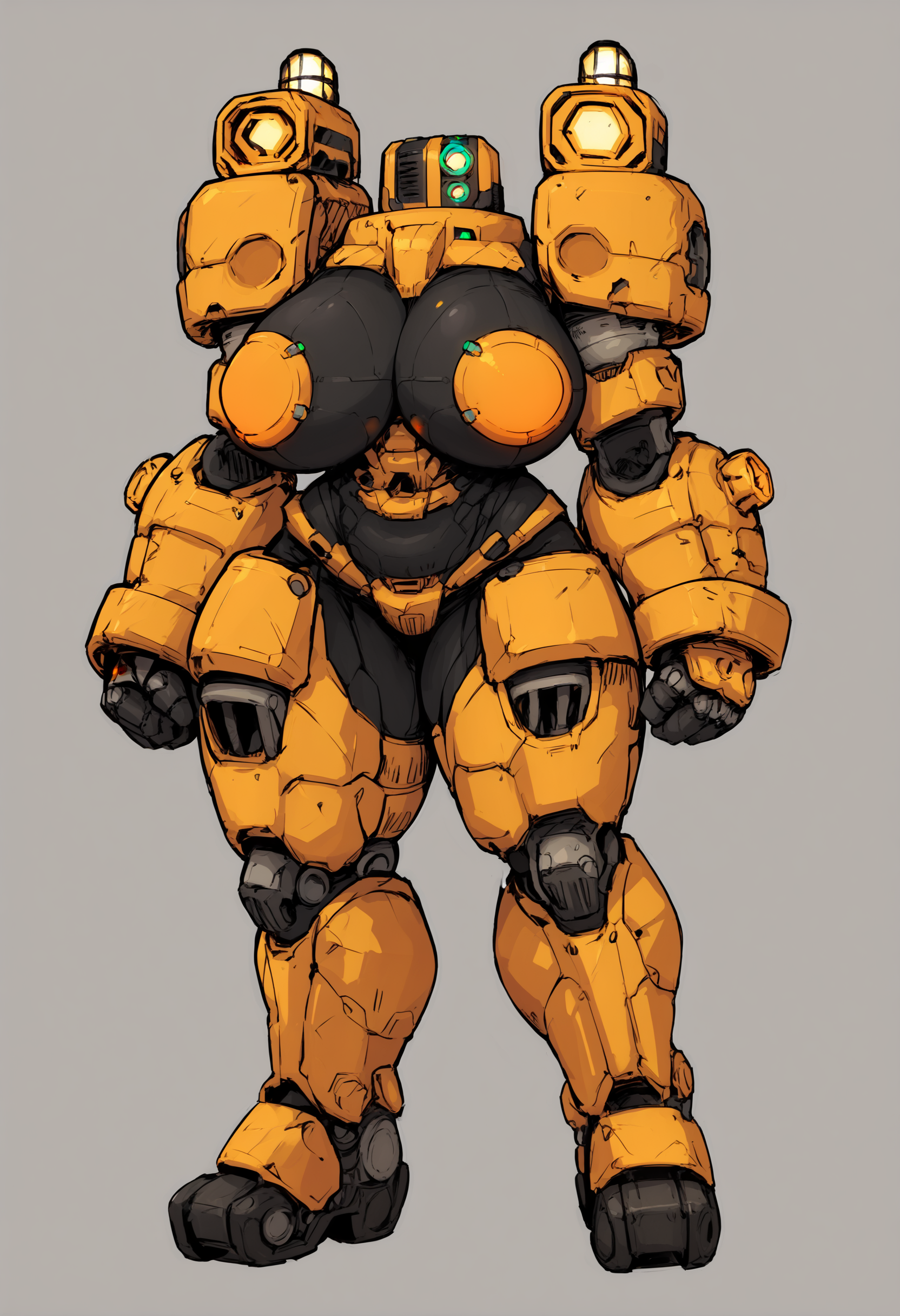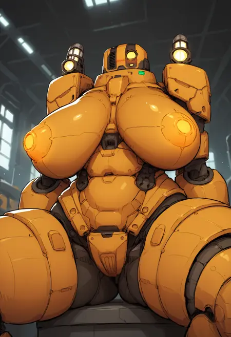1girl, robot, no humans, mecha, thighs, thick thighs, breasts, huge breasts, standing, upped body, blush