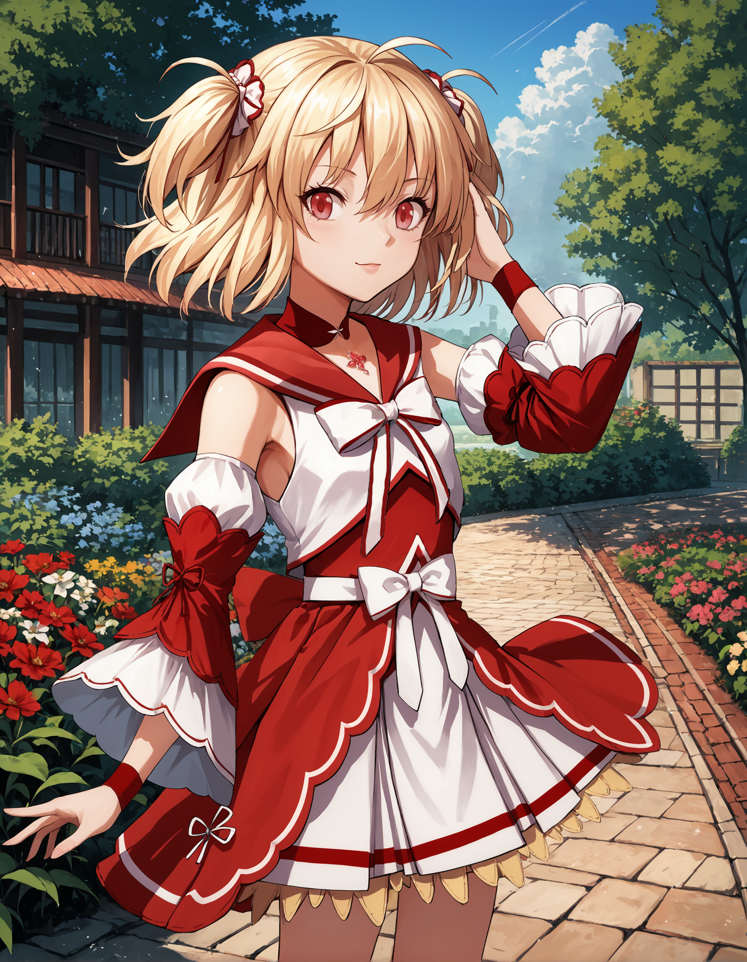 魔法服装: mgrcayanorika, rikamgc, 带蝴蝶结的白色发夹,红色项圈,红色胸饰,红色水手领,白色蝴蝶结领结,白底红裙,白底红 detach sleeves,腕部丝带,白色蝴蝶结腰带,红色背部蝴蝶结