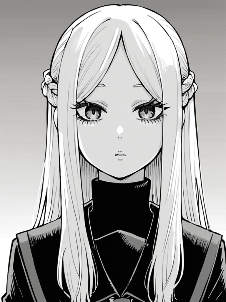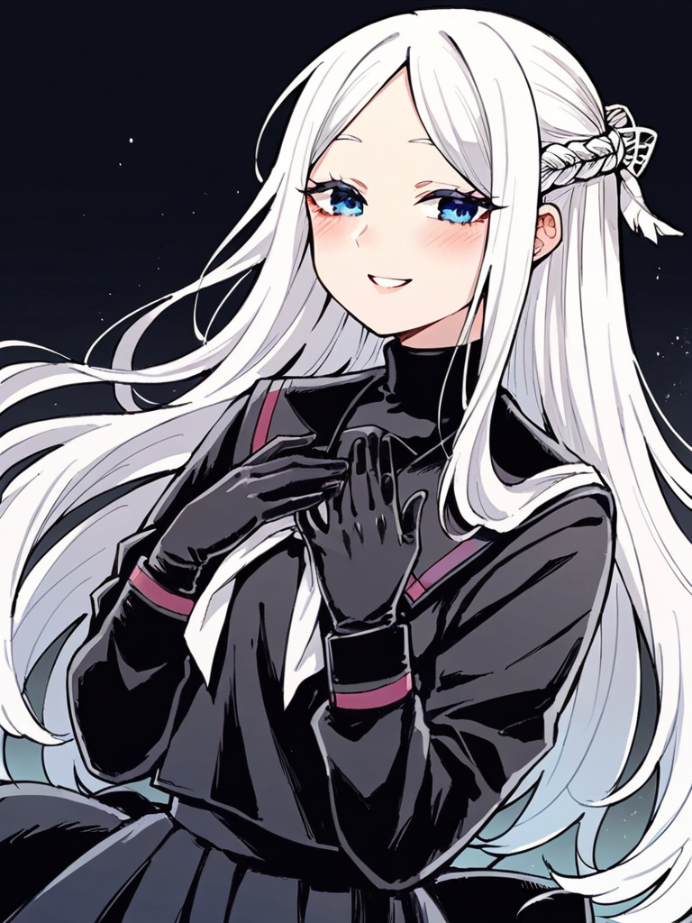 Keywords: ichijou michiru, white hair, long hair, parted bangs, french braid,