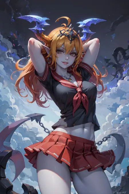 트리거 + 외모: hera, 악마 소녀, 파란 피부, 악마 뿔