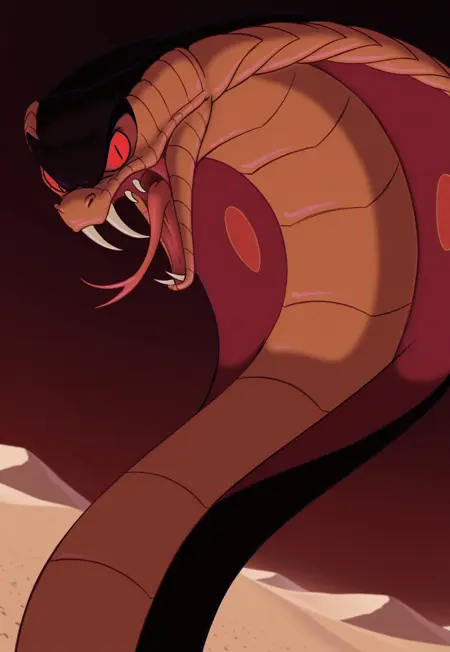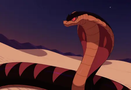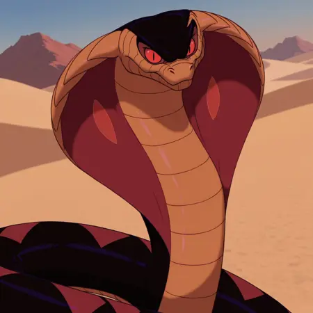 알라딘에 등장하는 자파르가 뱀으로 변신한 모습입니다. 뱀으로 변신한 디자인이 매우 멋져서, 이 변신 상태의 자파르를 위한 LORA를 제작했습니다. 대부분의 학습 데이터는 영화 캡처 이미지 약 25~30장을 사용했습니다.