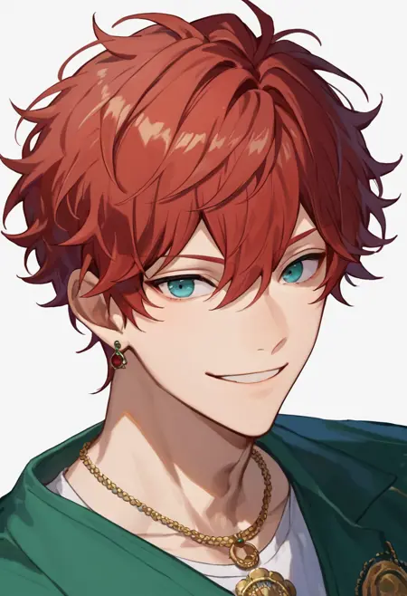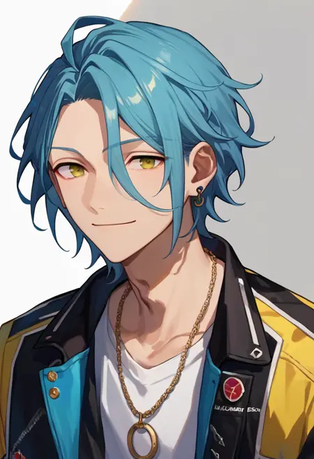 rinne amagi, 1boy, earrings, shirt, jacket, necklace