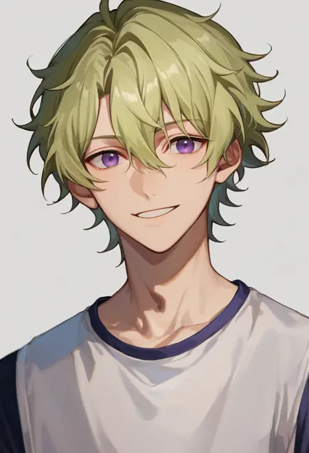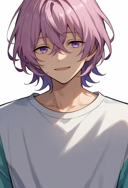 shinobu sengoku, 1boy, hair over one eye, purple hair, streaked hair