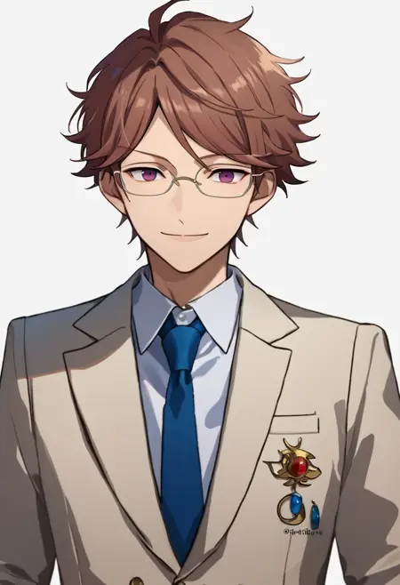akiomi kunugi, 1boy, glasses, brown hair, necktie, collared shirt, formal, suit, jacket