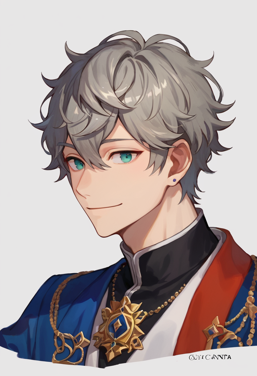 niki shiina, 1boy, grey hair, shirt, open mouth