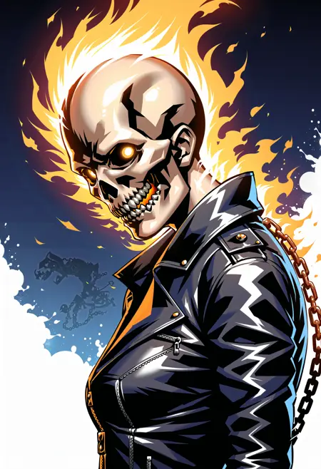 고스트 라이더, 마블, (두개골:1.1), (불타는 두개골:1.1), 두개골, 화염, 이빨, 여성형 인간.