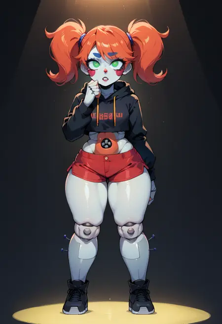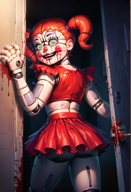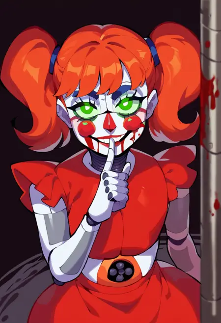 액티베이션 태그는 _circus baby_입니다. 올바른 외형을 얻지 못한다면, robot, red hair, twintails, crop top, red skirt, red shoes, frills 태그를 사용하세요.